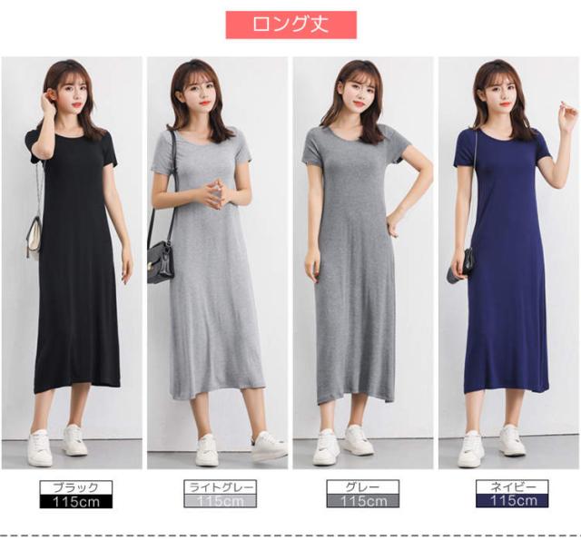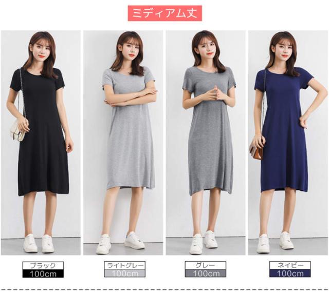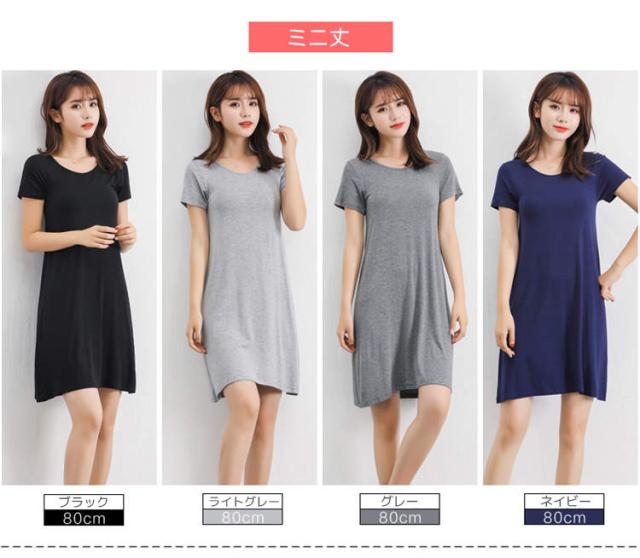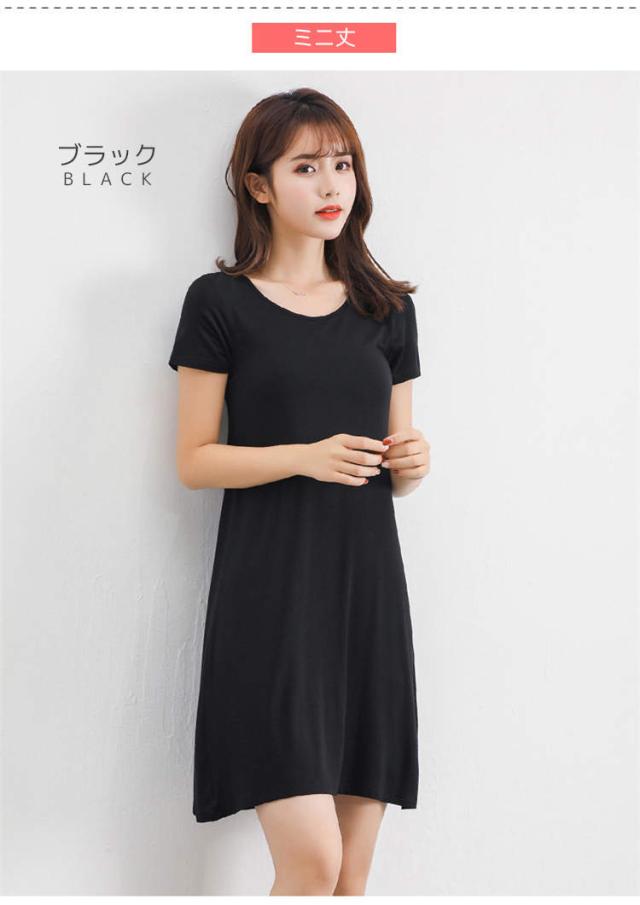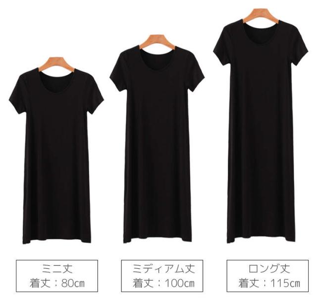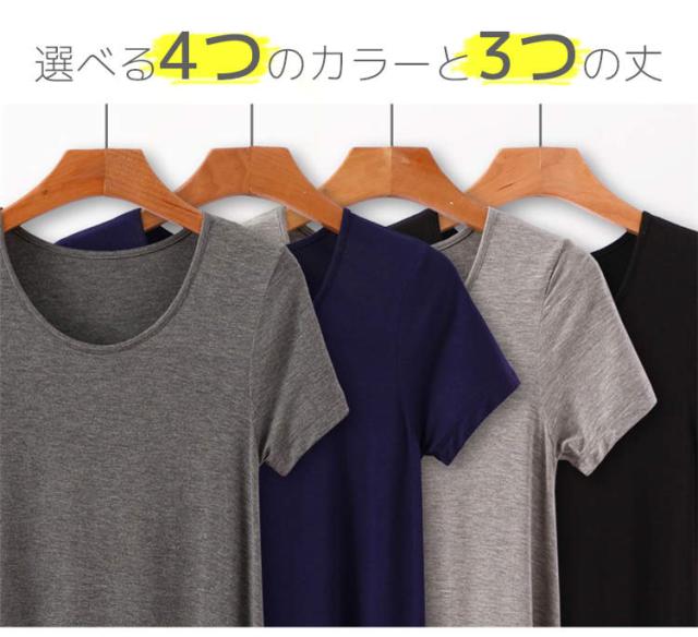 インナー ワンピース レディース 半袖 カットソー Tシャツ ロンT Tシャツワンピ インナーワンピース 肌着 春夏秋冬 白 灰 黒 ホワイト グレー ブラック ネイビー 天然素材 モダール ストレッ