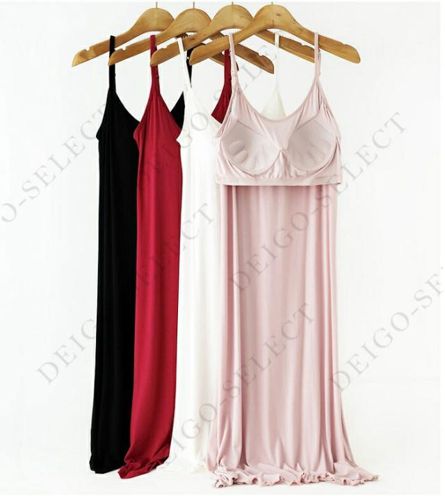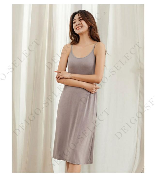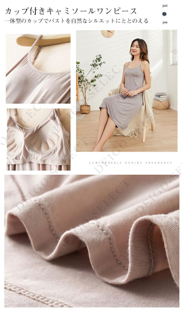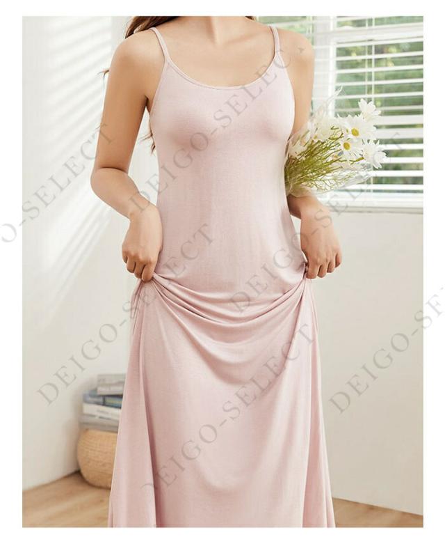 カップ付きシンプルなキャミソールワンピース。