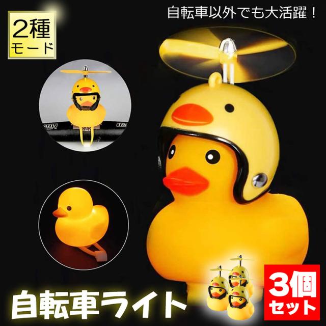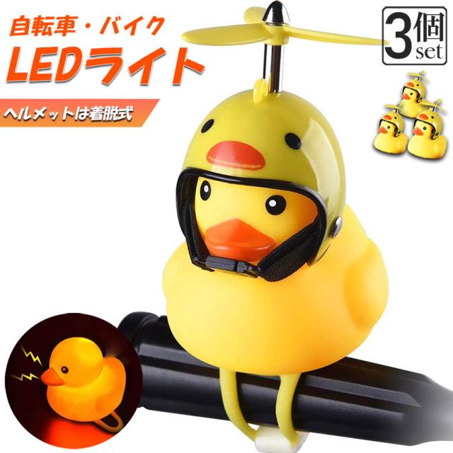 自転車ライト 黄色アヒル 3個セット 可愛い 自転車ベル プロペラ搭載 音が出る 振動 ライト点滅 夜間走行に バイク 車にも ヘルメットにプロペラ付き 車内インテリア 取付簡単 夜間