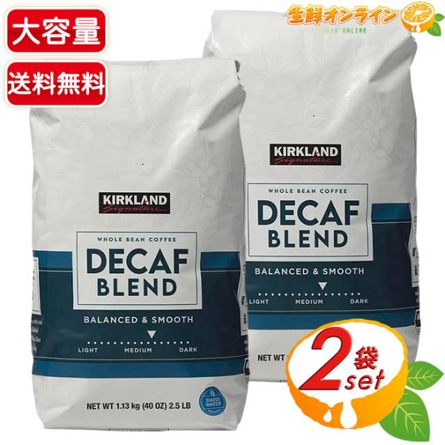 ≪1.13kg×2袋セット≫【KIRKLAND】カークランド デカフェ ブレンドコーヒー 豆 ミディアムロースト 青 大容量 1130g ディカフェ ホールビーンコーヒー カークランド コーヒー 珈琲豆【コストコ】