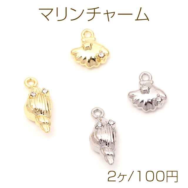 マリンチャーム つぶ貝モチーフ シェルチャーム 海の生き物チャーム オリジナルアクセサリー制作にお薦め 1カン (2ヶ)
