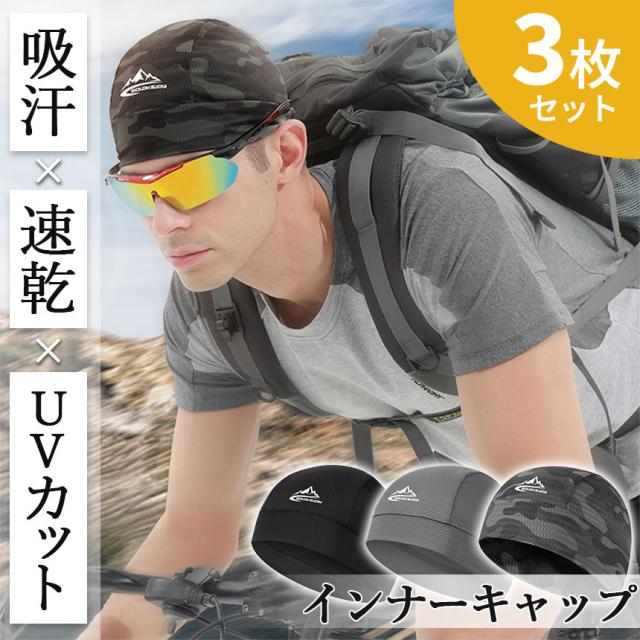 インナーキャップ ヘルメット 3枚セット キャップ 帽子 ヘルメットインナー インナー ヘルメットキャップ 吸汗 速乾 UVカット 紫外線 日焼け 汗 バイク 自転車 メッシュ 通気性 伸縮性 作業 工事 スポーツ 登山 サイクリング ツーリング ヘアバンド バンダナ 薄い 軽い