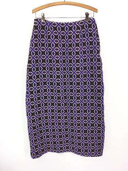 レディース 古着 60s レトロ トライバル チェック ストレート ウール ゴブラン スカート マキシ丈 M位 古着