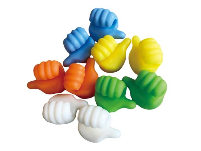 ■商品サイズ(1個当り):約)3×2.2×2.2cm■商品重量(1個当り):約5g■材質:本体/熱可塑性ゴム(TPR)、接着剤/アクリル系■セット内容:10個入(全5色:右手・左手/各1個)■原産国:中国