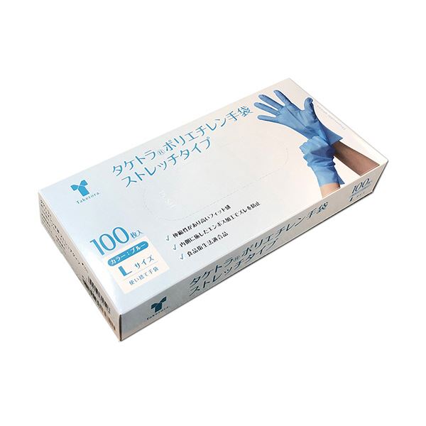 商品仕様: 〔まとめ〕 竹虎 タケトラポリエチレン手袋 ストレッチタイプ パウダーフリー ブルー 青 L 1箱 (100枚) 〔×5セット〕 使い捨て手袋
