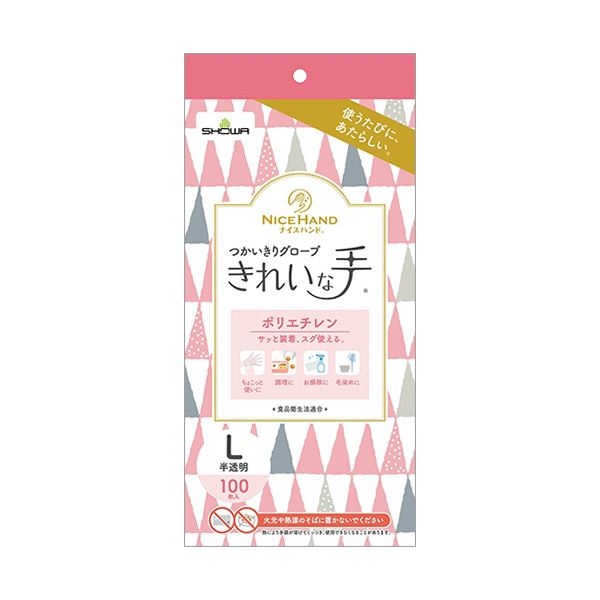 商品仕様: 〔まとめ〕 ショーワグローブ ナイスハンド きれいな手 つかいきりグローブ ポリエチレン L 半透明 NHKTTGPE-L100P 1箱 (100枚) 〔×5セット〕