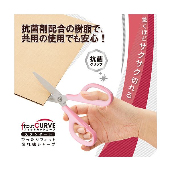 (キーワード: オフィス 事務 事務所 事務員 仕事 職場 仕事 仕事場 職場 会社 法人 整理 整理整頓 5s 5s 収納 耐久 効率 効率化 RDA0002850750 4734972 日用品 文房具 手芸用品 文房具 事務用品 画材 はさみ シュレッダーはさみ 雑貨 手芸 裁断用品 抗菌 清潔 効果があるピンク色のプラスフィットカットカーブ スタンダード 刃渡り65mmで使いやすく、グリップも快適 5本セットでお得)