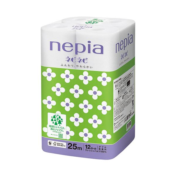 商品仕様: 王子ネピアネピネピ トイレットロール ダブル 25m 無香料 1セット(72ロール:12ロール×6パック)