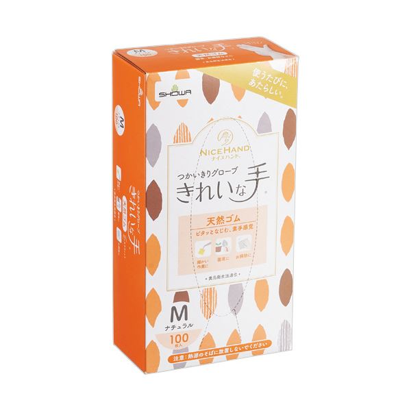 商品仕様: ショーワグローブ ナイスハンド きれいな手 つかいきりグローブ 天然ゴム パウダーフリー M ナチュラル NHKTTGNR-M100P1箱 (100枚)