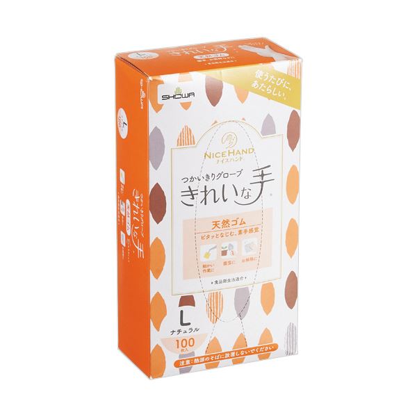 手肌を守る最高の味方 自然素材の手袋で清潔な手を保つ パウダーフリーで快適な装着感 Lサイズ100枚入り ショーワグローブ ナイスハンド きれいな手 つかいきりグローブ 天然ゴム パウダーフリー L ナチュラル NHKTTGNR-L100P1箱 (100枚)