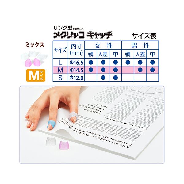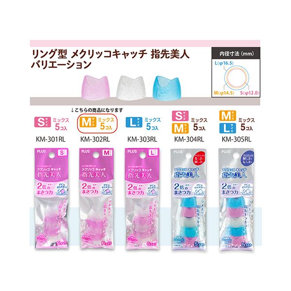 商品仕様: プラス リング型メクリッコ キャッチ 指先美人(ラメ入り) M ピンク・ホワイト 白 KM-302RL 1セット(50個:5個×10袋)