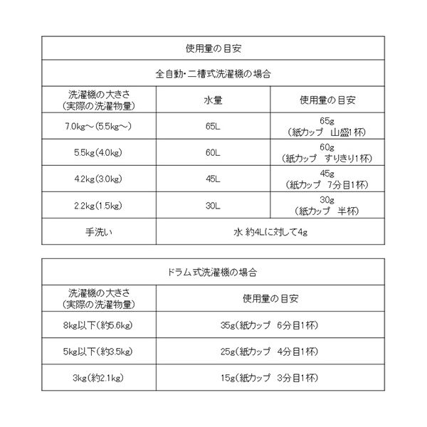 標準使用量:水30Lに対して、30g(紙カップ半杯)