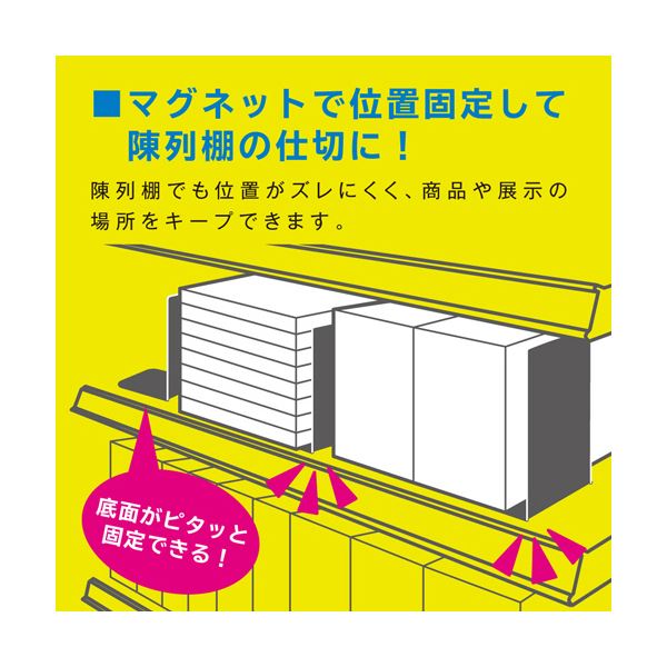 ●マグネットで位置を固定できるので、商品陳列時の仕切り板としてスーパーや小売店の店頭でも使えます。