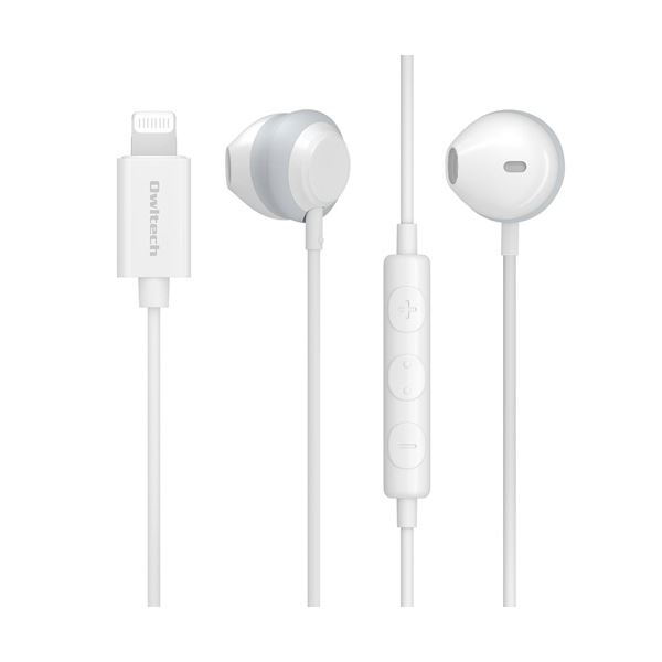 オウルテックLightningコネクタイヤホン リモコン&マイク付 ホワイト 120cm OWL-EPLT02-WH 1個 白 ライトニングコネクタイヤホンとリモコン&マイクがセットになったホワイトカラーの120cmケーブル付きイヤホン 1個 白 送料無料