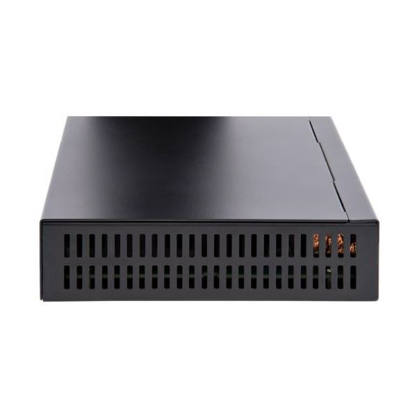 ●利便性:オールメタル筐体、デスクスペースを取らないコンパクト型スイッチ。付属のキットで壁面設置が可能。セキュリティスロット(Kensington標準スロット)で盗難を防止。SoHo環境に適した静音ファンレス設計。