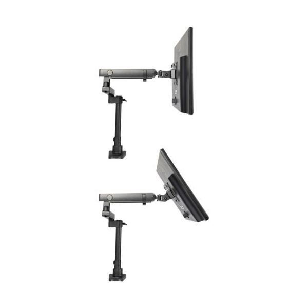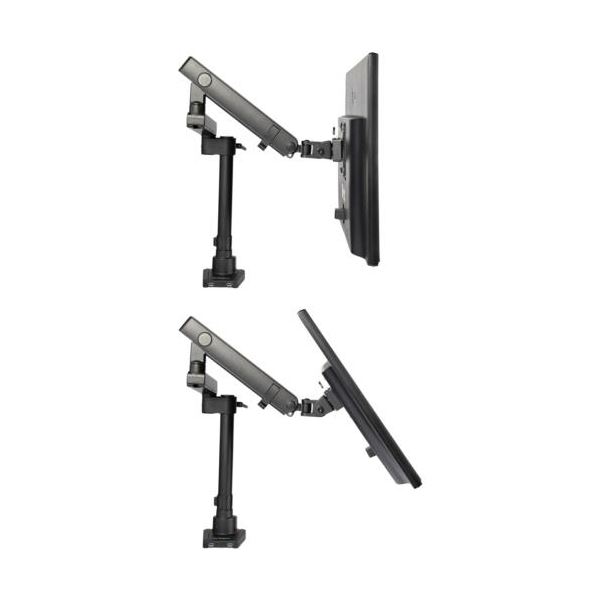 ●上下振り+/-90°、左右振り+/-90°、画面回転90°(縦向き・横向き)、300mmのポールに沿ってツール不要の高さ調節が可能。エルゴノミクスに対応し、快適で仕事がはかどる環境を構成。