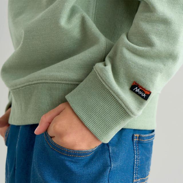 〈アイテム説明〉 ナンガロゴを左胸に刺繍で配置したデザインのナンガ定番のスウェットシャツ。こちらのキッズモデルも、大人用と同じ仕様になっていますが、右腰におやつなど入れられるパッチポケットを配置。ボディーによって刺繍のカラー変えています。細部までこだわりの感じられるすスウェットシャツになっています。