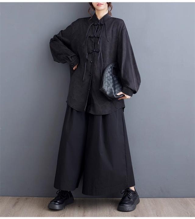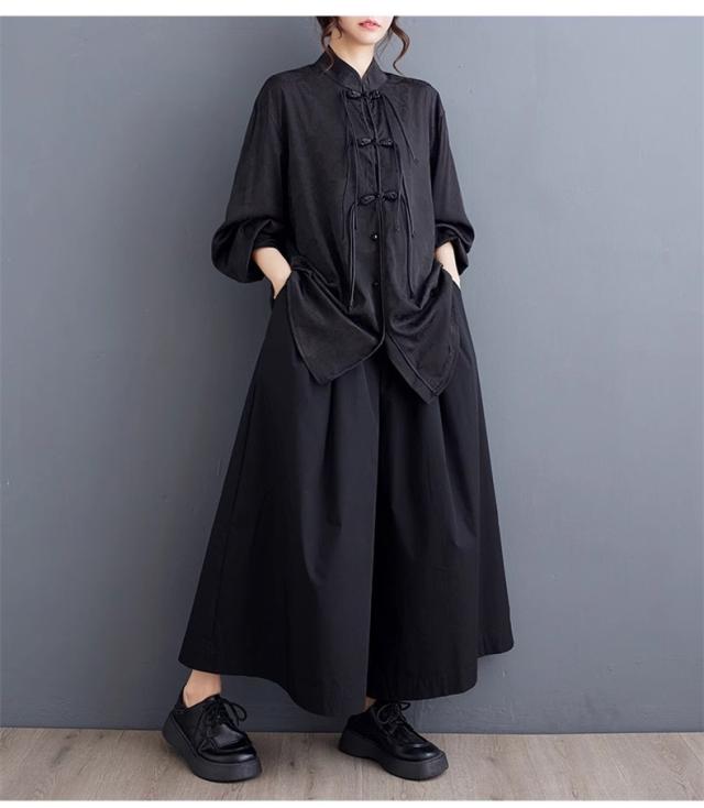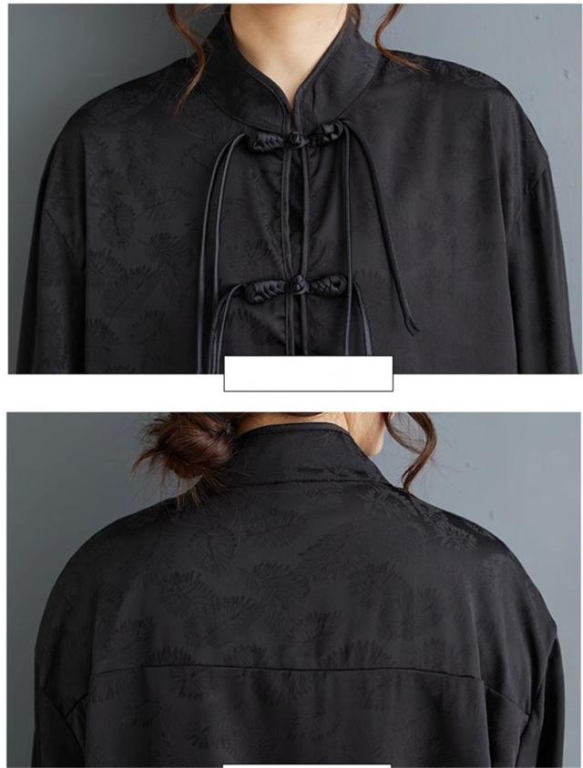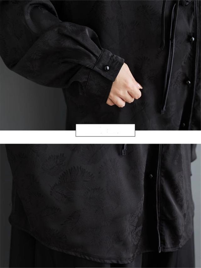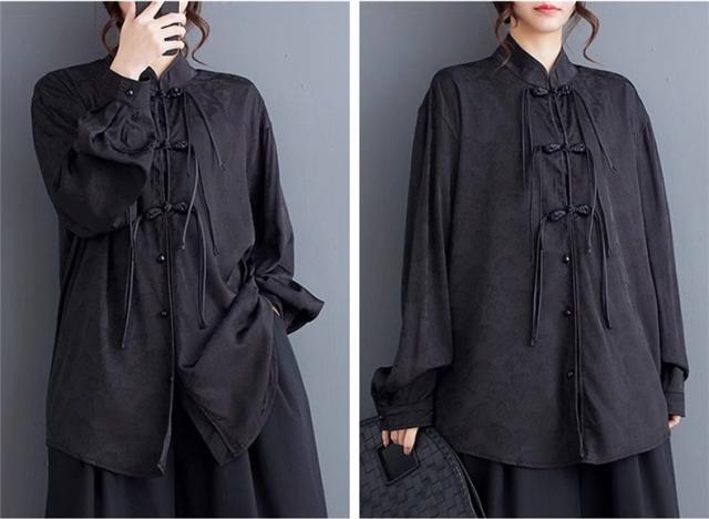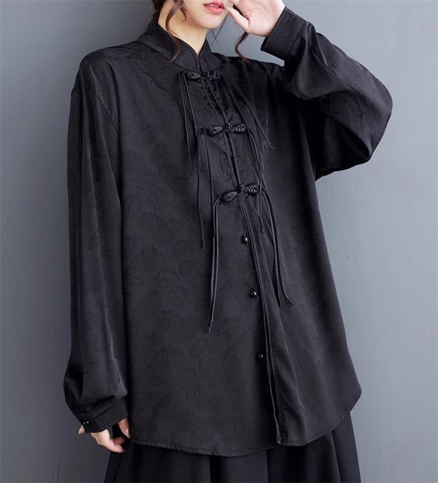 ブラウス レディース 春秋 黒シャツ サテン 長袖 チャイナ風 光沢トップス きれいめで大人っぽい 上品な着こなしに ちょっとしたフォーマルなシーンにも