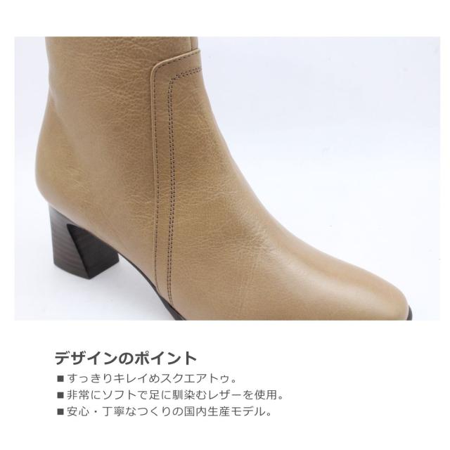 cavacava サヴァサヴァ サバサバ レディース ブーツ 3720527 ショート スクエアトゥ チャンキーヒール レザー 革 日本製 国産 防滑 歩きやすい 靴 黒 ブラック グレージュ