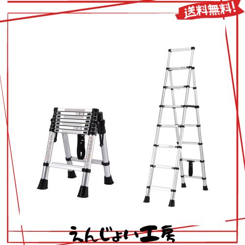 伸縮はしご兼用脚立 最長2.3m伸縮梯子安全ロック付き 耐荷重150kg 持ち運びやすい 折り畳み 伸縮アルミはしご 屋内 屋外 屋根 倉庫 掃除 作業(2.0m+2.3m)