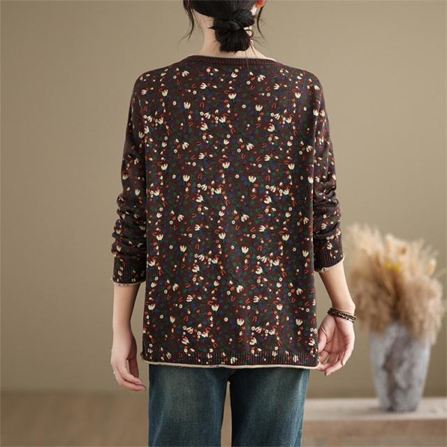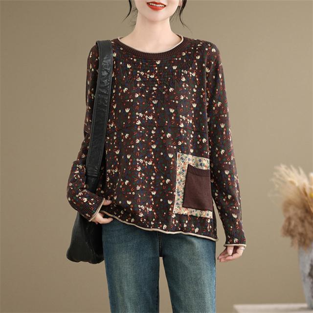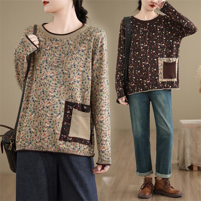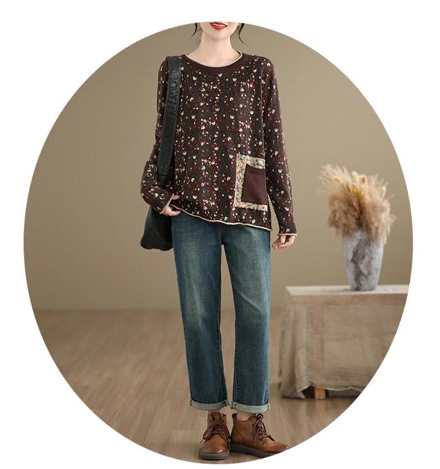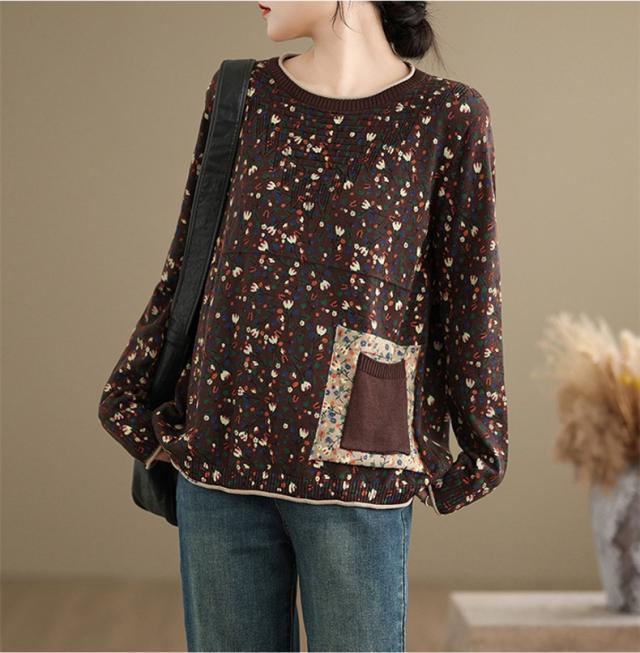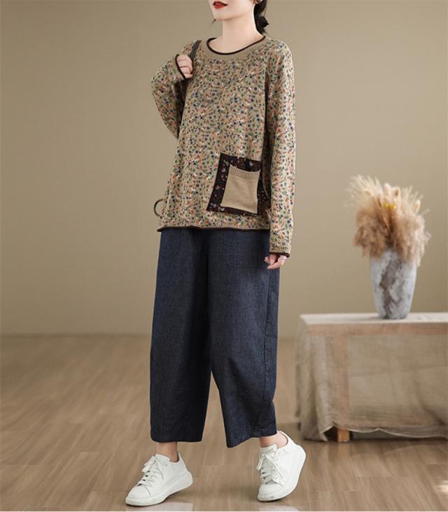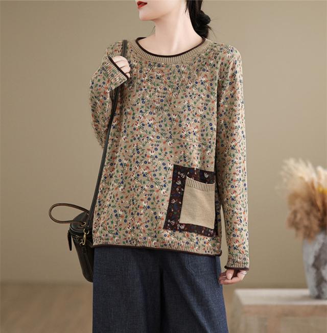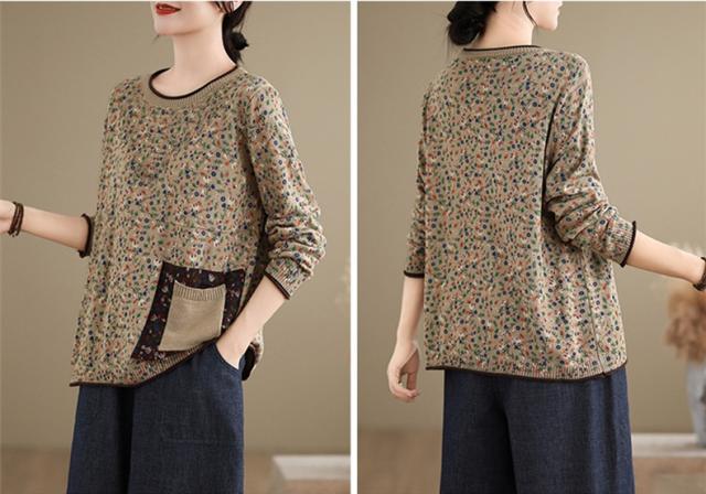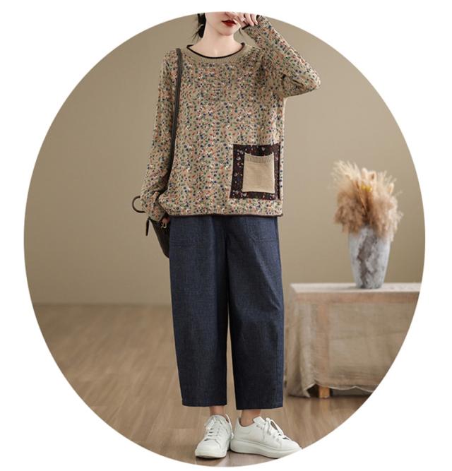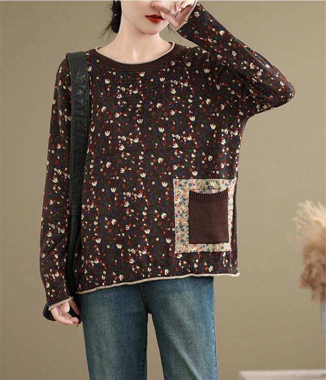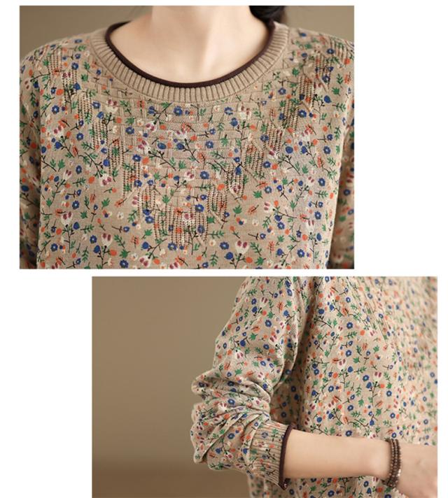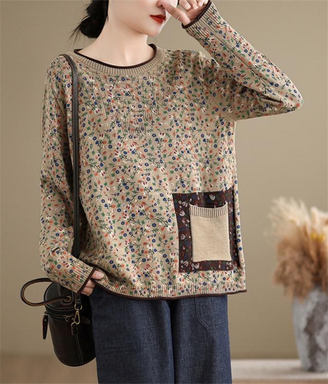 春秋ニット 薄手 レディース コットン 人気 大人トップス 長袖 手洗い 花柄 ご近所コーデにもお出かけコーデにもなる優れもの これからの時期に大活躍
