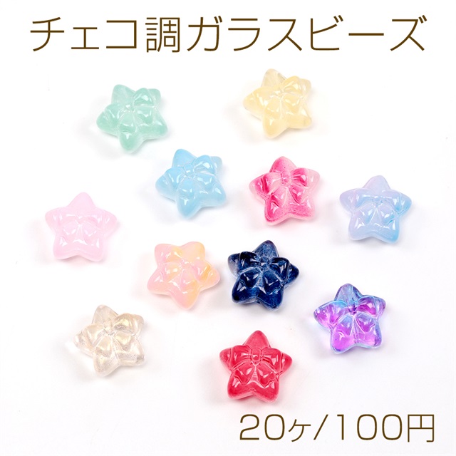 チェコ調ガラスビーズ スターモチーフ チェコ風ガラスビーズ 星型ガラスビーズ 縦穴 約14mm (20ヶ)