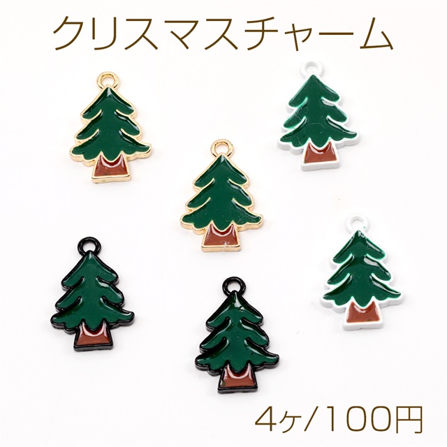 クリスマスチャーム クリスマスツリーモチーフ 立体ツリーチャーム エポ木チャーム 1カン付き 約11×16mm (4ヶ)