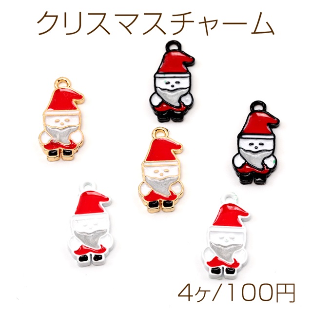 クリスマスチャーム サンタクロースモチーフ 立体サンタクロースチャーム エポチャーム 1カン付き 約8×16mm (4ヶ)