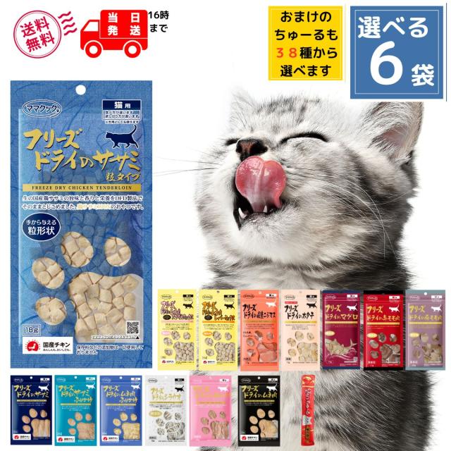 ママクック 猫 フリーズドライ おやつ 全14種から選べる6袋 送料無料 (おまけのちゅーる1本も38種から選べます)