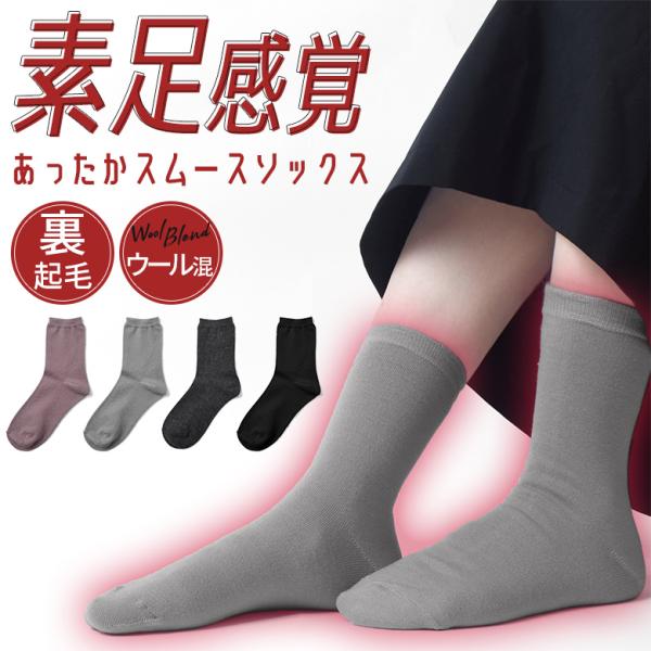 裏起毛ソックス 靴下 レディース ソックス 裏起毛 ウール混 1足 暖かい あったか あたたかい 冬 可愛い おしゃれ 無地 日本製