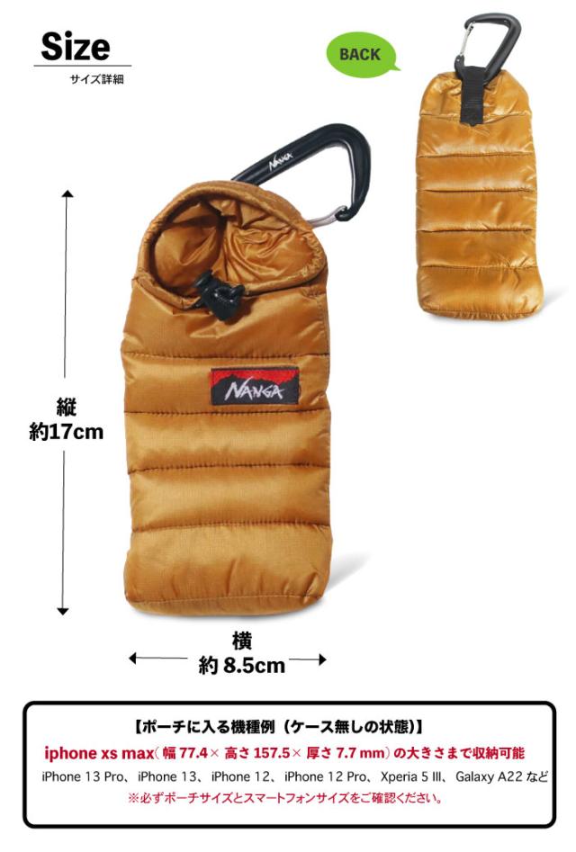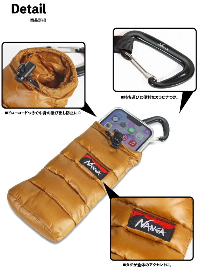 NANGA ナンガ ミニスリーピングバッグ フォンケース カラビナ付き スマートフォン スマホ 携帯 ケース ポーチ 小物入れ 収納 iPhone Google Pixel Xperia Galaxy AQUOS arrows HUAWEI NA2441-3A101 ゆうパケット2点まで送料無料