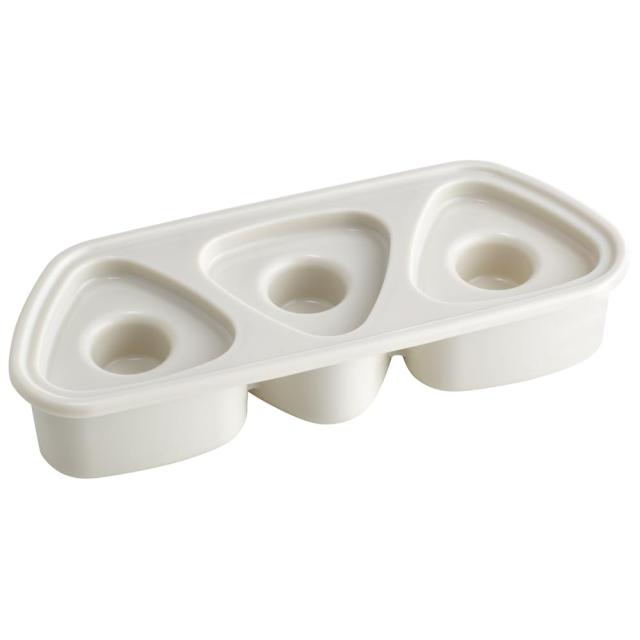 具がたっぷり入る、くぼみ付おにぎり押し型。 具材を簡単に入れられる、くぼみ付きでいろいろなアレンジが可能 1度に3個作れます。 1個あたり約70gと食べやすいサイズ! ごはんがくっつきにくい表面加工でお手入れもラクラク 食洗機・電子レンジOK