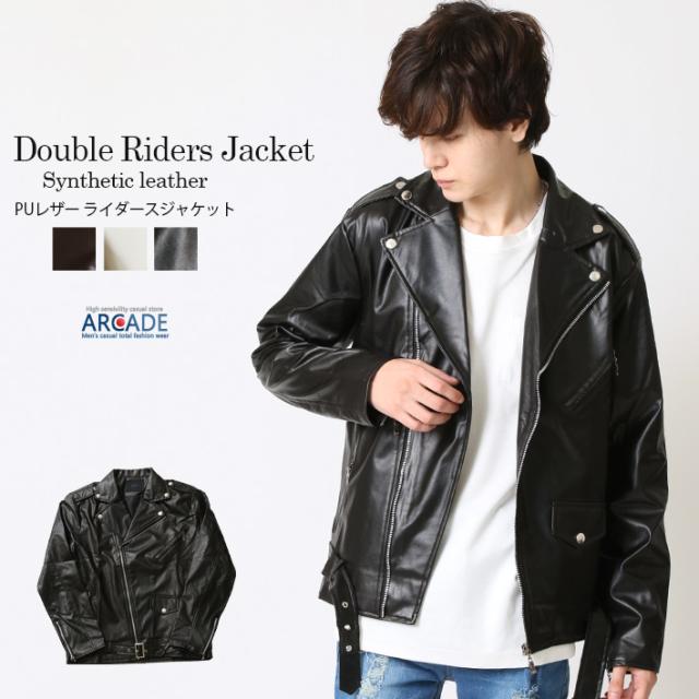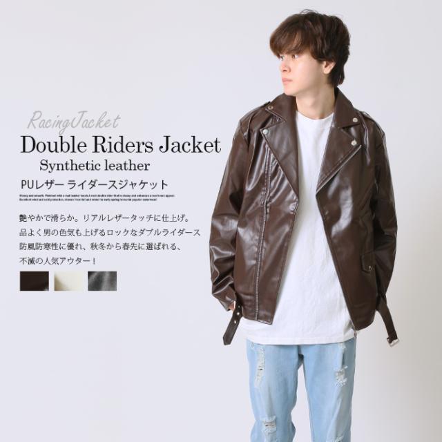 ライダースジャケット メンズ ダブルライダース 合成皮革 PUレザージャケット ロッカーズ バイカー ダブルジャケット