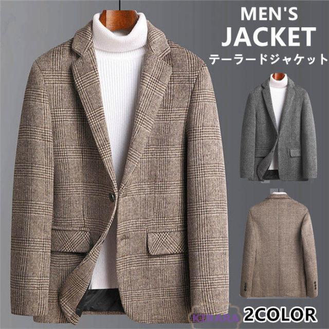 テーラードジャケット メンズ ウール チェック柄 アウター スーツ 通勤 通気 スリム ピーコート Pコート 大きいサイズあり 細身 イギリス風 カジュアル おしゃれ 春秋物 新作