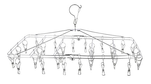 洗濯物を干すときに。 ステンレス製だからさびにくく丈夫で長持ち。 ストッパー付フックで風に強い。 ピンチも絡みにくく耐久性にも優れています。