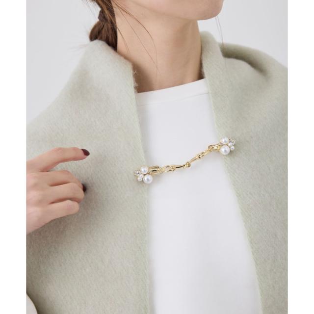 ・ストーン風パーツやパールビーズ、メタルパーツを組み合わせた、デコラティブなストールクリップ。