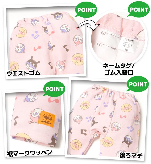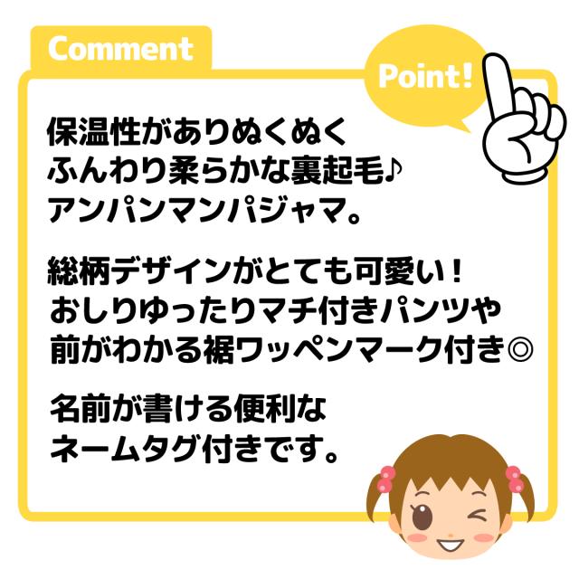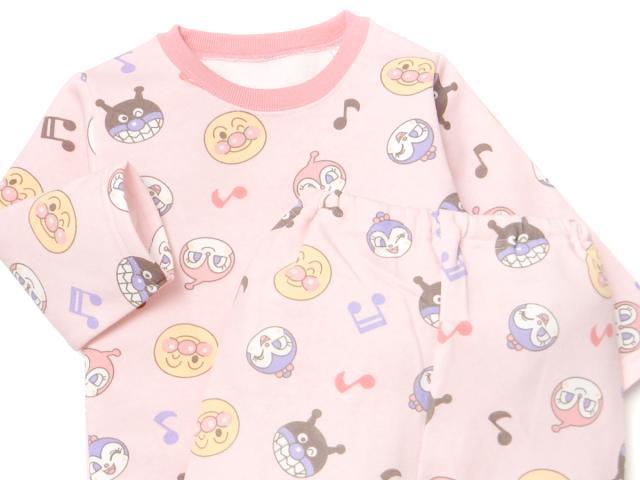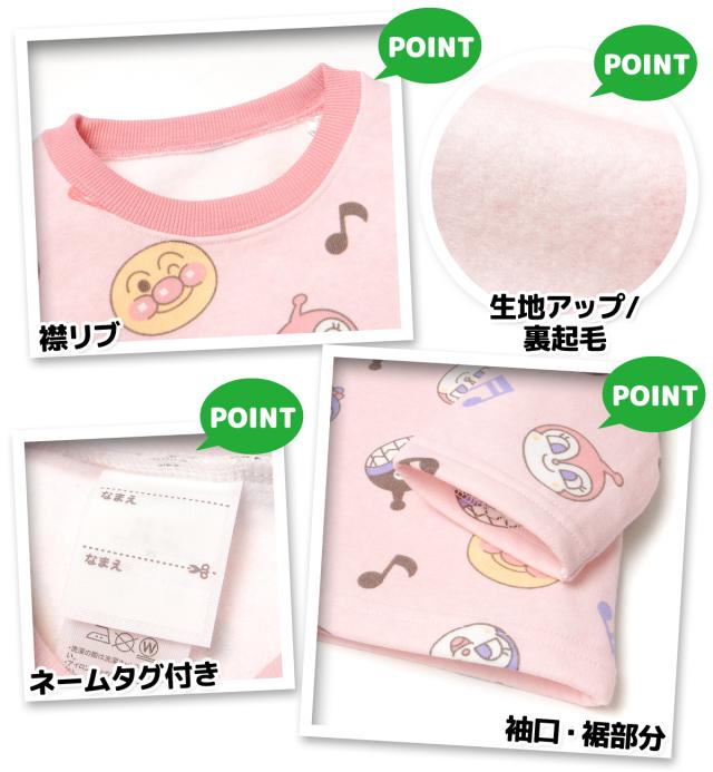 【送料無料】女児 ベビー 裏起毛 長袖 パジャマ アンパンマン あったか素材 保温 上下組 後ろマチ 前がわかるマーク付 ベビー服 女の子 80cm 90cm 95cm iw-1185a-pk【メール便対応】