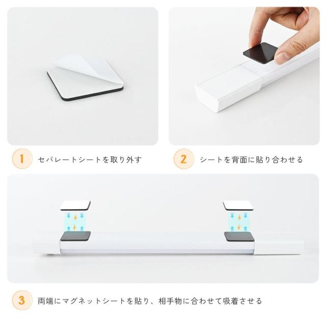 マグネット式で、鉄部分に簡単に取り付け可能。工具不要で設置や移動が手軽にできます。