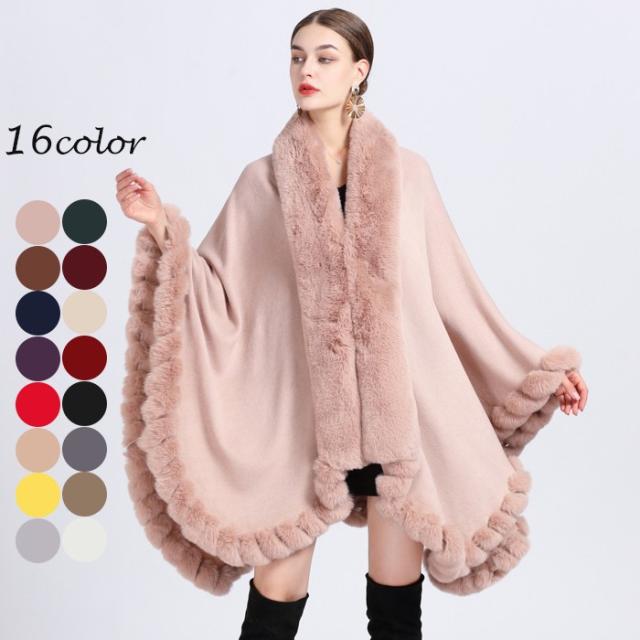 16カラー ケープコートファー付き ポンチョコート ファーコート 肩掛け レディース ケープ 羽織 アウター マント フェイクファー カシミヤタッチ 着物 上品カジュアル きれいめ 50代 40代 30代 20代 プレゼント k6166zbzbz7