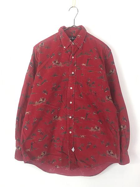 古着 90s USA製 Ralph Lauren ボート 野鳥 狩猟 プリント コーデュロイ BD シャツ M 古着