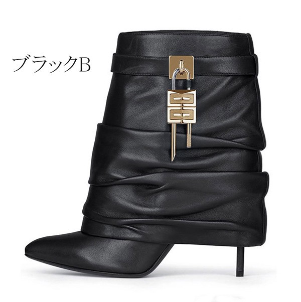 レディースブーツ 鎖飾りロック飾りブーツハイヒールシューズ ブーツ 靴 小さいサイズ 大きいサイズ ブーツdi052zuzum5