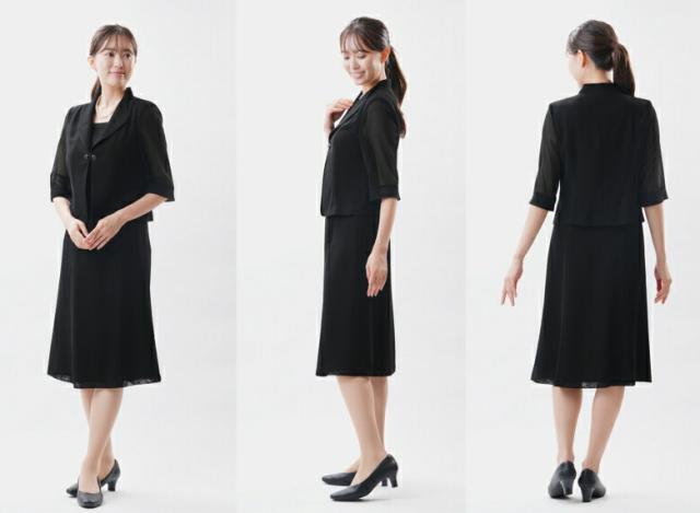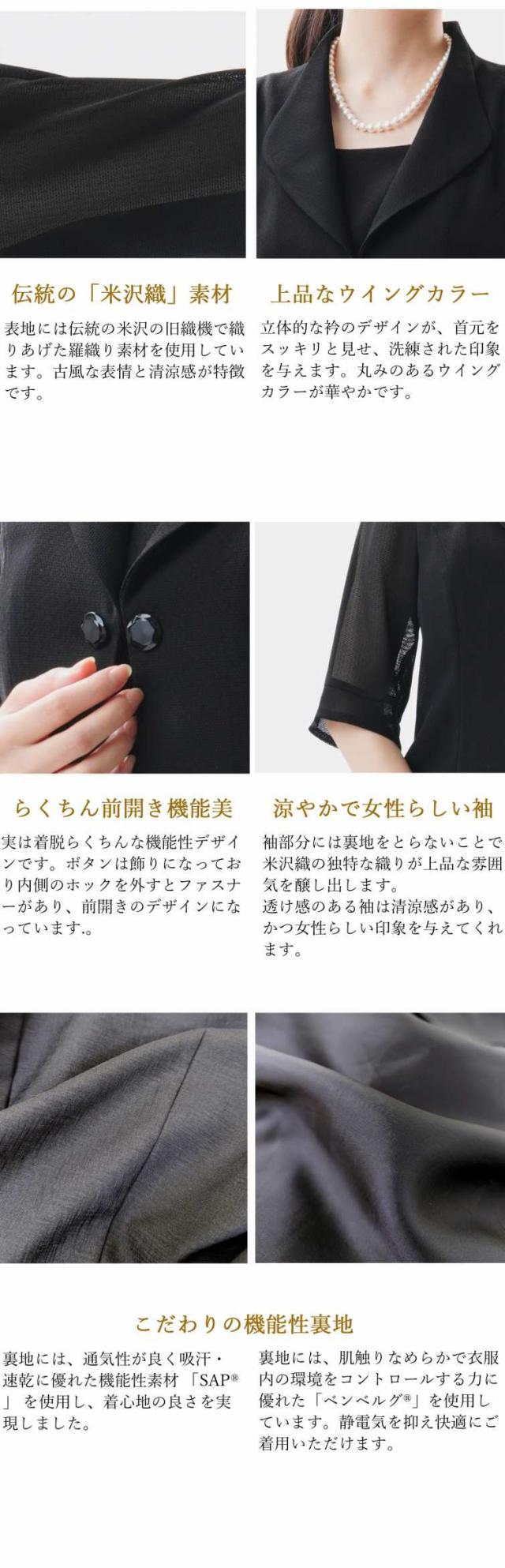 吸湿速乾 静電気軽減 米沢織 夏用ブラックフォーマル アンサンブル風ワンピース 日本製 涼しい 羅織り 礼服 喪服 レディース