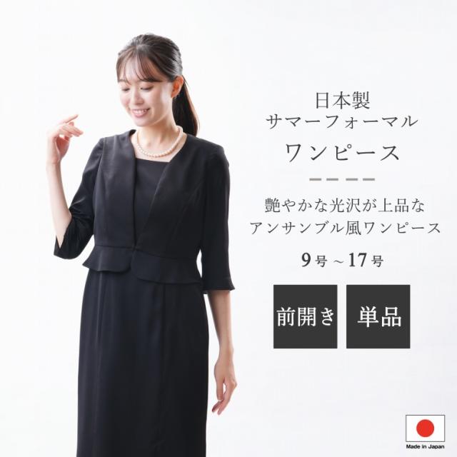 春夏秋 日本製 国内縫製 フォーマル セレモニーワンピース:RL16172 単品 アンサンブル風 タイトラインワンピース 前開き 9AR/11AR/13ABR/15ABR/17ABR ブラック 結婚式 卒業式 入学式 パーティ 三回忌以降の法事 礼装 礼服 ドレスコード スマートエレガンス レディース 婦人