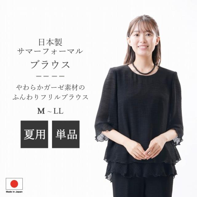 日本製 国内縫製 夏用 ブラックフォーマル ブラウス :CR-270 単品 ボトムス別売り ガーゼ素材