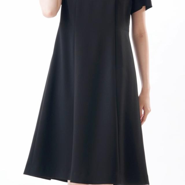 切替えを工夫し、裾に向かって程よく広がるAラインのワンピースはきれいなシルエットで、スタイルよく見せてくれます。