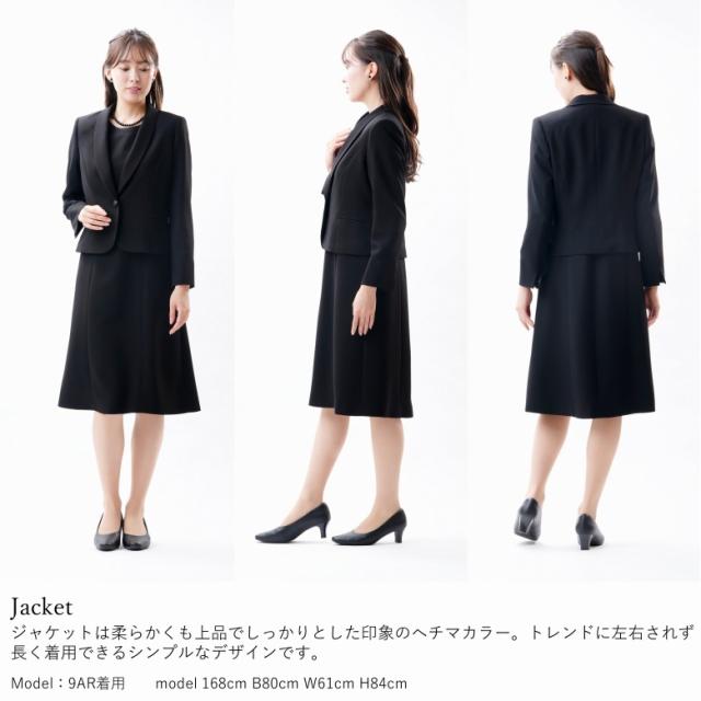 日本製 ブラックフォーマル アンサンブル :FD16406 ヘチマカラージャケット+前開きワンピース 国内縫製 弔事 慶事 婦人 礼服 喪服 日本製 黒 冠婚葬祭 葬儀 葬式 通夜 法事 法要 礼装 レディース