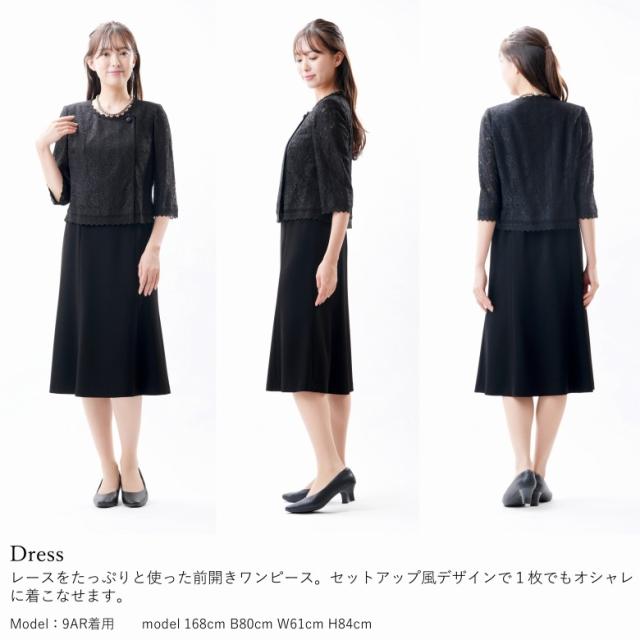 ブラックフォーマルアンサンブル (ノーカラージャケット+セットアップスーツ風ワンピース) 日本製 国内縫製 レース オールシーズン 礼服 喪服 レディース しわになりにくい