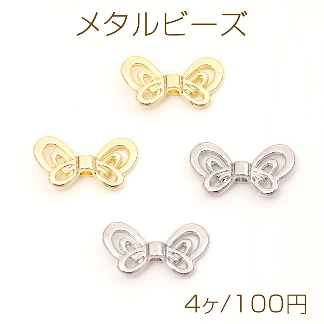 メタルビーズ 蝶モチーフ 立体メタルビーズ スペーサービーズ 縦穴 約 9×17mm (4ヶ)