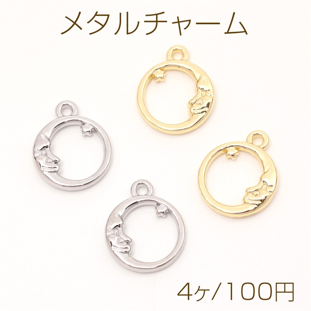 メタルチャーム 月チャーム ムーンチャーム ラウンドフレームチャーム 宇宙系チャーム 1カン付き 約16×20mm (4ヶ)