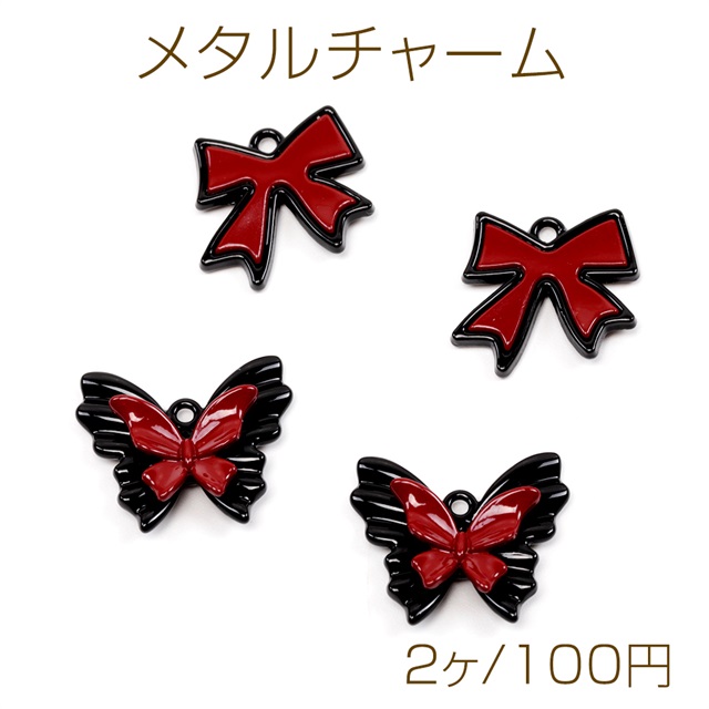 メタルチャーム 塗装 ゴシック風 メタルリボンチャーム メタル蝶チャーム リボン 蝶パーツ 2種類 1カン付き (2ヶ)